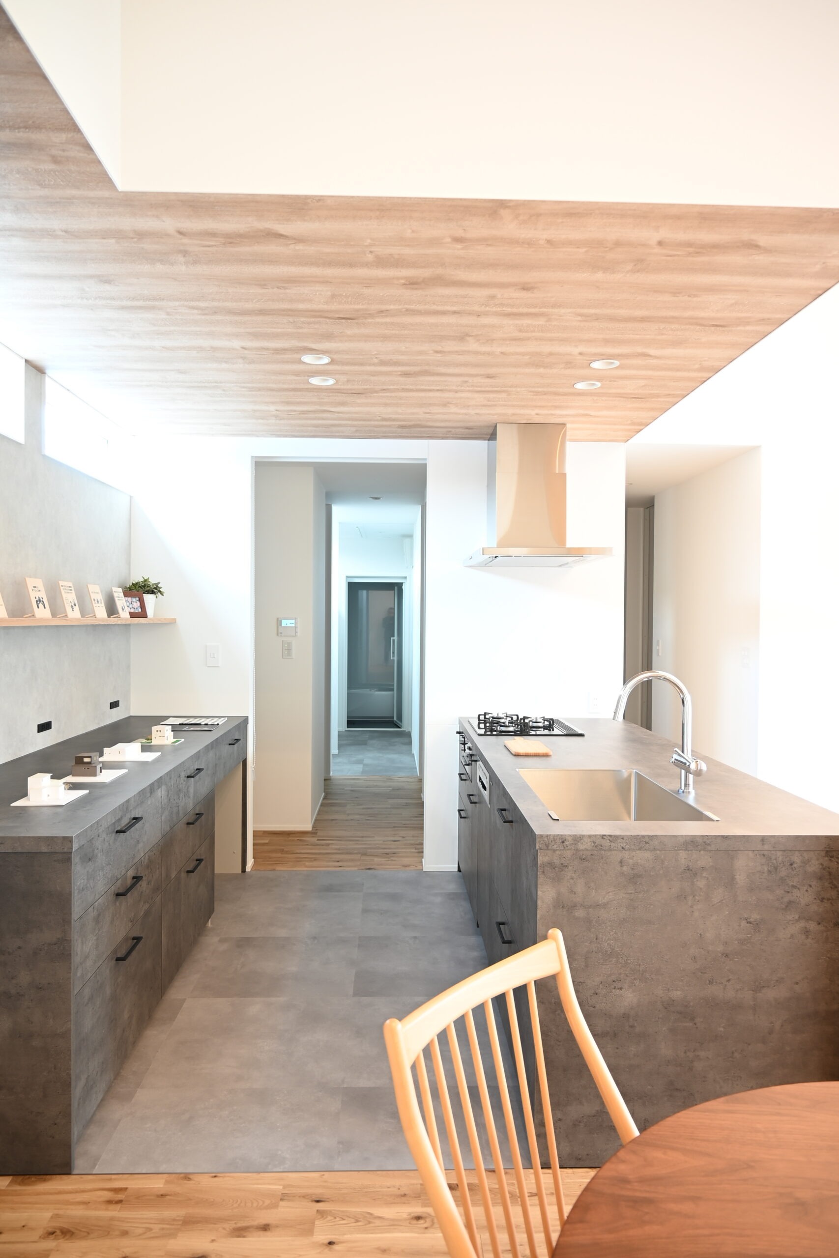 家の中心には、廊下兼収納を配置。