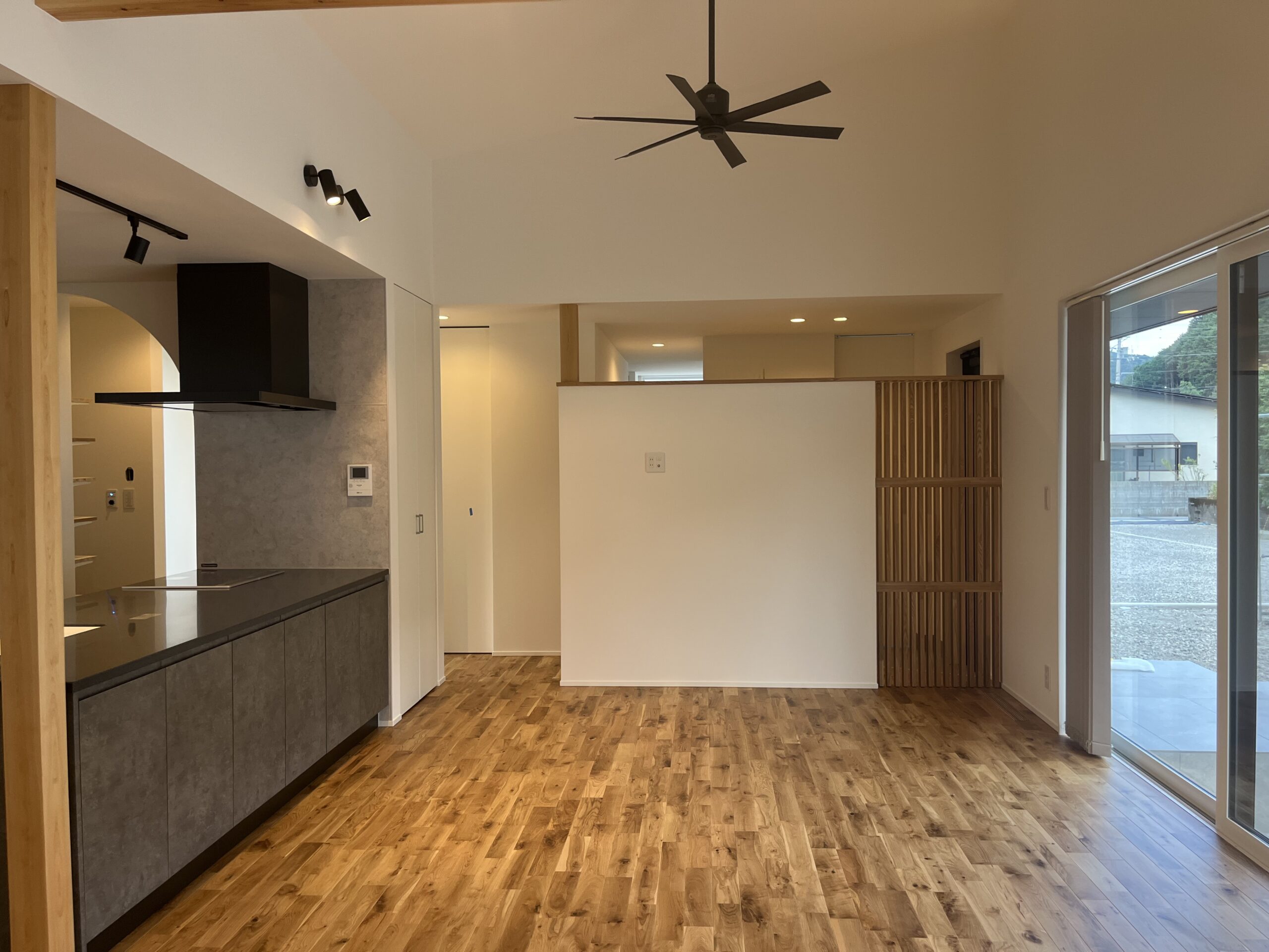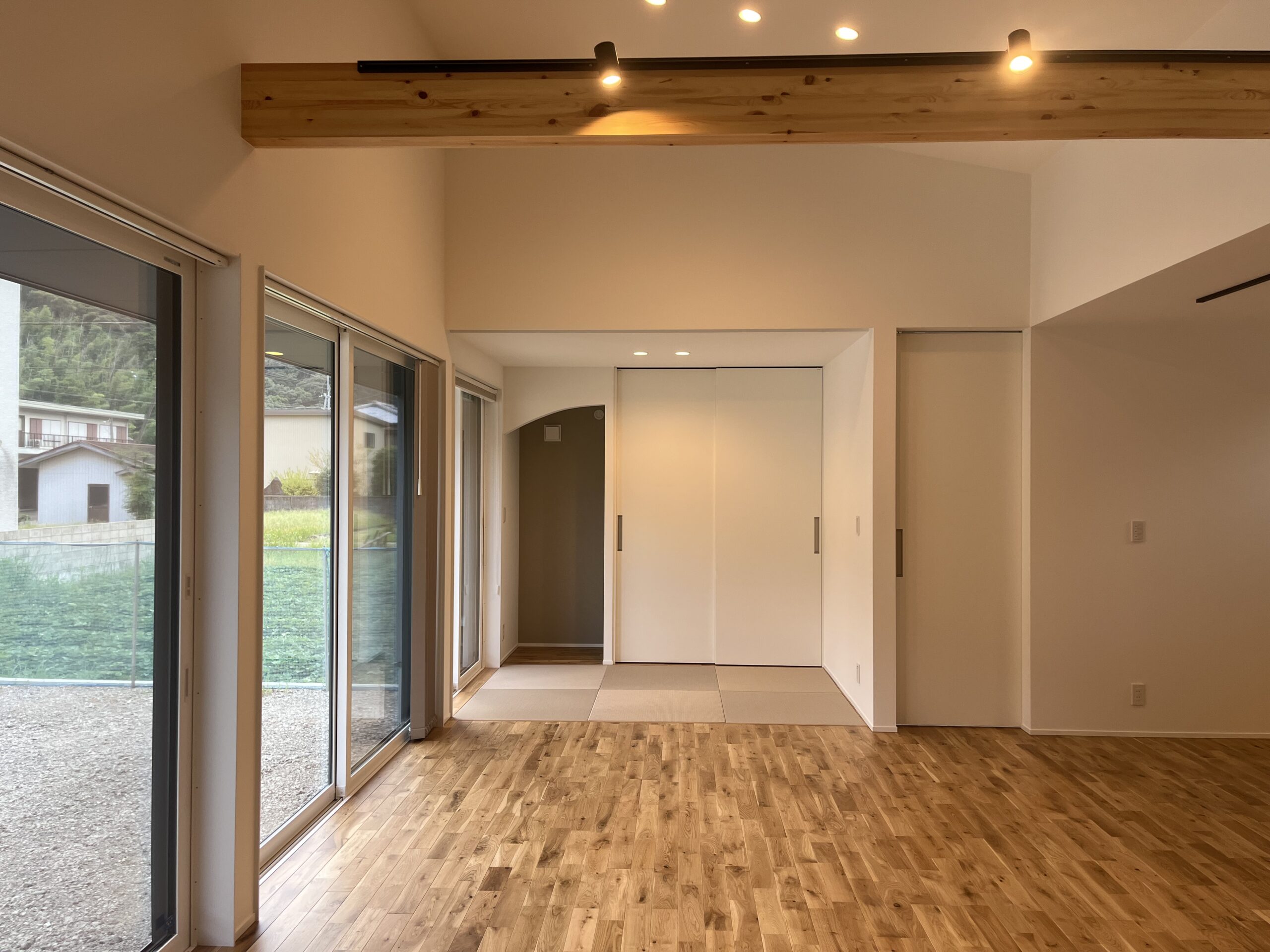 大きな窓を開け放てば、リビングと庭が一体となり、まるで外と内が溶け合うような心地よさを感じられます。