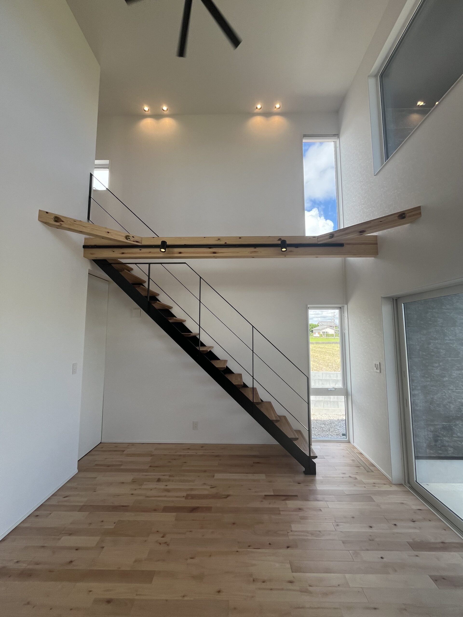 リビングと2階をつなぐ吹抜けを介して、視線や光が縦に抜け、どこにいても外の風景とつながりを感じられます。